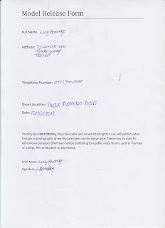 The following forms are my model release forms for the models I am going to photograph for my contents and front cover page. The form contains their consent for me to use their images in production of my magazine and to be published online or in this blog: